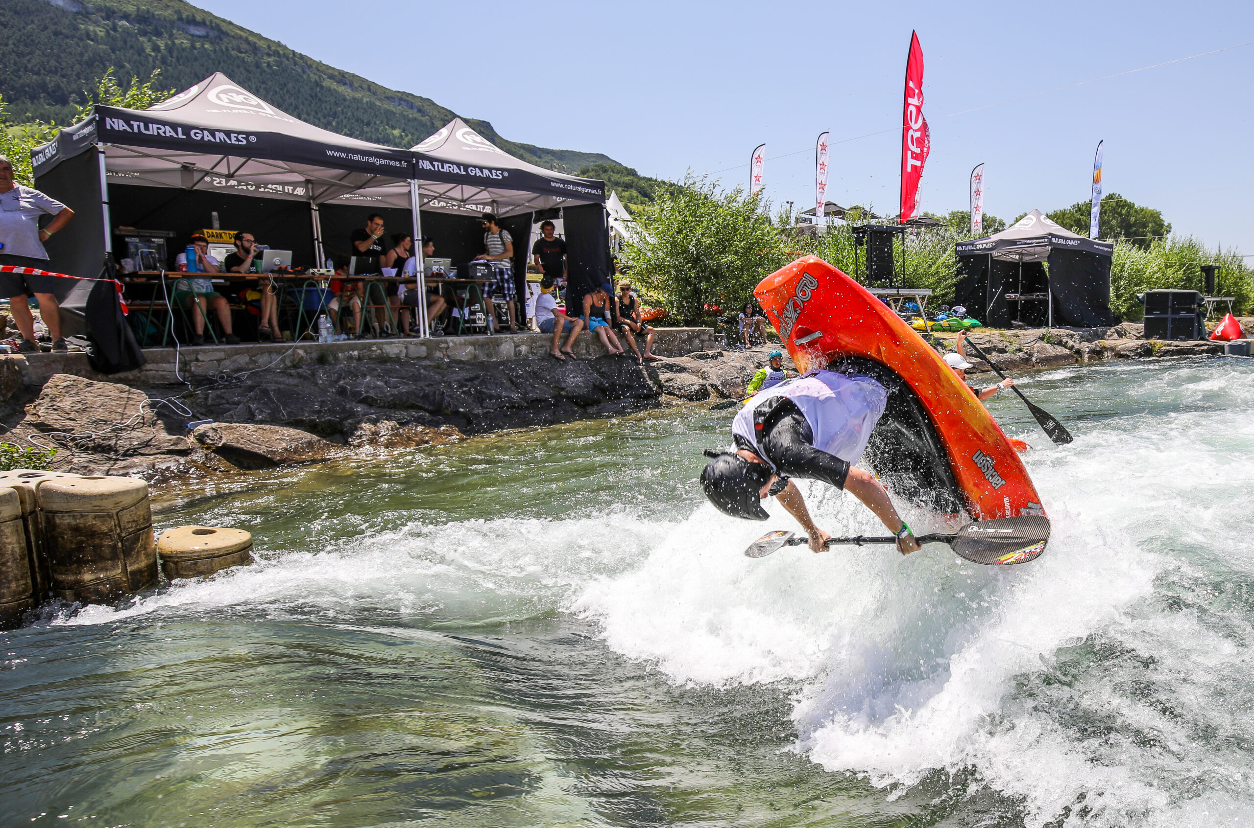 Freestyle kayaking involves performing acrobatic moves in whitewater using a kayak, canoe, or open canoe. This discipline is practiced on specific sections of rivers called “spots,” which feature massive waves or powerful holes. France boasts stunning spots like Hawaï-sur-Rhône in Lyon or La Malate in Besançon.