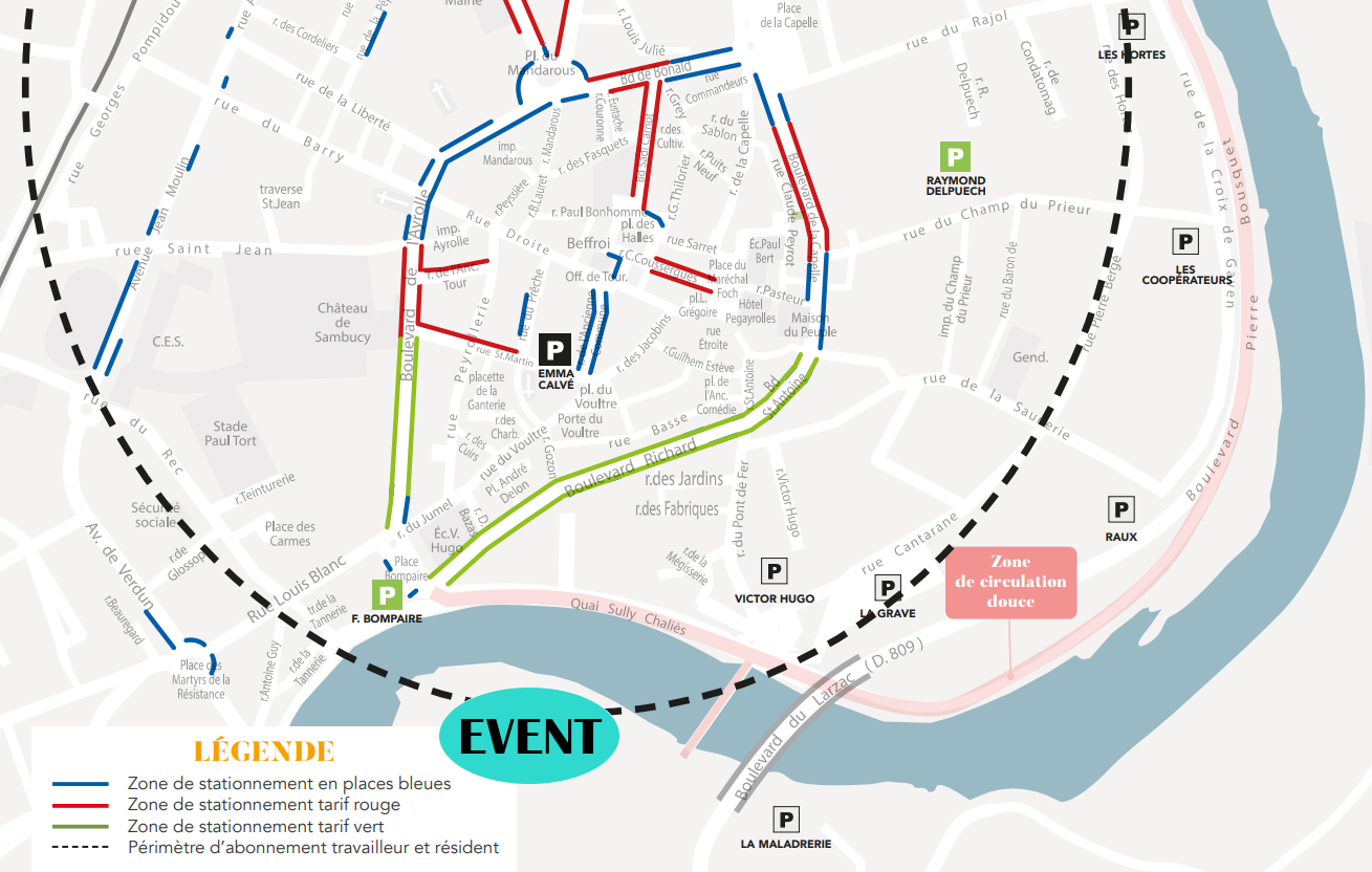 Millau is a medium-sized town, and it is very easy to reach the venue on foot or by bus. Four free 24-hour parking areas are available near the site (La Maladrerie, La Grave, Victor Hugo, Raux), and a footbridge provides direct access across the Tarn from the city centre.